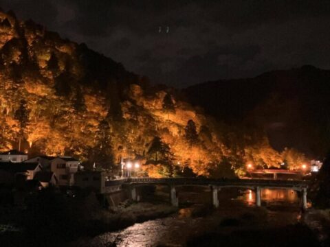 香積寺の竹灯りが香嵐渓の夜を彩ります。